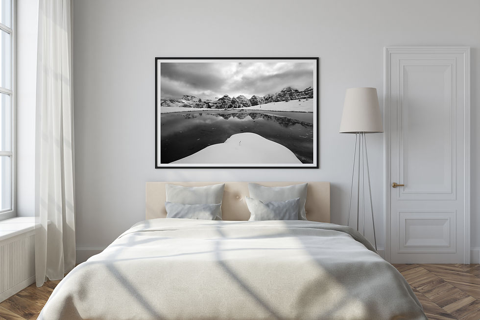 Hungabee Lake Reflection 2 B&W